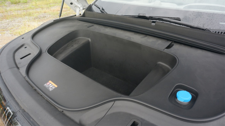 虽然是一台后驱平台的纯电车型,但极氪的三电整合度似乎并没有友商那么高,从前备箱就可以看得出来,容积只有62L,四驱版本车型的更是只有44L。而且这个前备箱的位置也比较远离车头,个头不太高的女生取放东西并不便利。