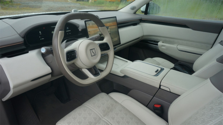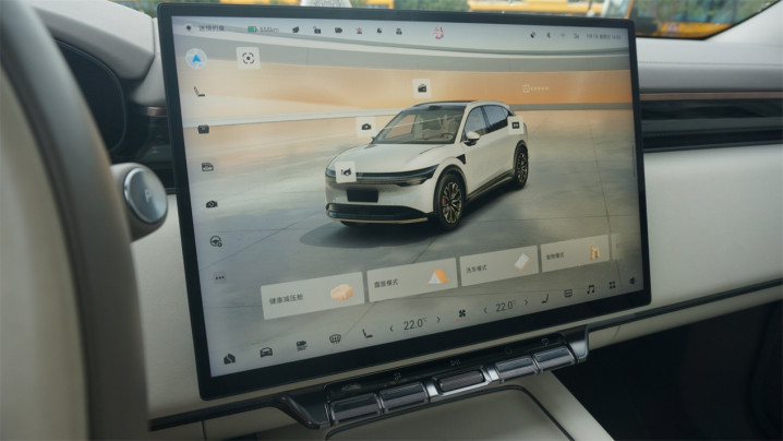 虽然告别了动辄黑红色混搭的运动化风格,但是内饰的设计依然让人能迅速辨别出出自极氪之手,譬如方向盘和007、007GT是共用的;仪表盘也是家族式的半椭圆形设计,交互自然也是平台化的,右侧带有可切换的自定义信息栏,支持用方向盘来控制空调等等。