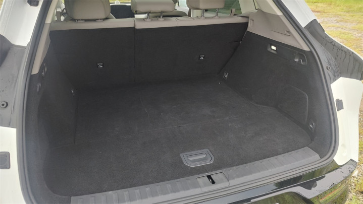 尾厢的标称容积达到了616L,但看起来不算大,这和行李厢的地台偏高有很大关系,身材较矮的用户搬动物品可能就没那么方便了。好在行李厢内壁很平整,地台的盖板下方隐藏了一前一后两个储物格,后方的深度比较大,放一些额外的旅行包完全够用了。