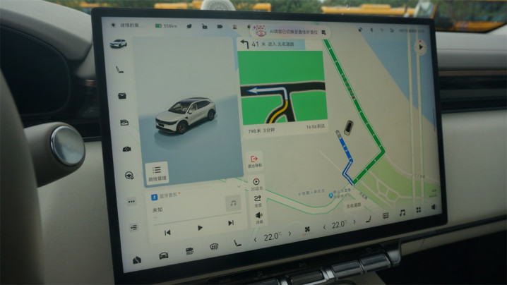 车机系统也是极氪自家的ZEEKR OS。或许有不少人会更希望用的是魅族系统,但至少在我使用的过程里,这套系统还是挺称职的。标志性的双Dock设计,虽然视觉上有些繁琐,但的确能省去不少找功能的麻烦。流畅性也过关,以3D车模为主页的界面观赏性也很好,将导航作为首页时还有SR渲染卡片,至少在交互上它很难挑出什么大的毛病。