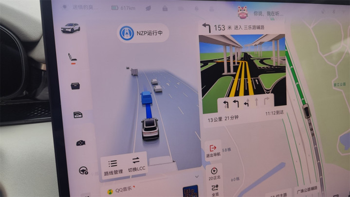 智驾方面依然不是极氪的强项。首先是交互方面,和大多数新势力车型一样,巡航功能开关集成在了怀挡上,但大部分实操下,怀挡下压两次只能开启ACC,需要再下压两次才能开启NZP(非导航状态下为LCC),似乎对于操作的识别灵敏度不足。其次是车辆路面决策的表现方面,跟车时的车距控制能力、制动的舒适性有所改善,但在市区复杂路口的决策能力依然不足,会出现错过左侧掉头、并入右转车道时机等问题。